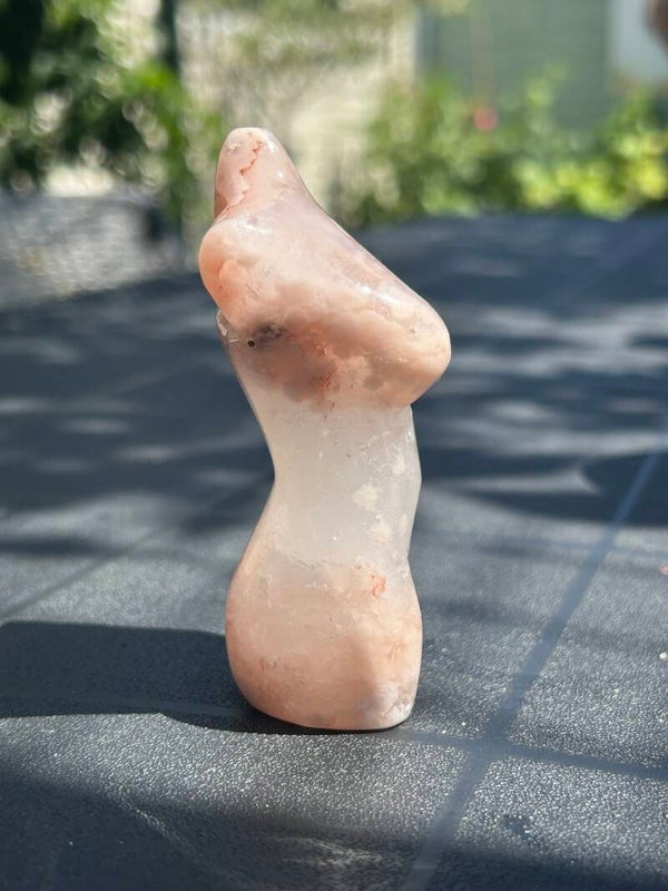 Bloemagaat is een zachte, vrouwelijke steen die persoonlijke groei, zelfvertrouwen en innerlijke rust bevordert. De bloemachtige insluitingen symboliseren bloei en nieuwe beginpunten. Afkomstig uit Madagaskar.