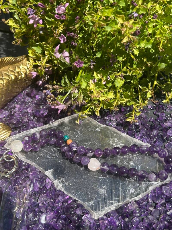 Amethist Telefoonkoord met Rozenkwarts hartje